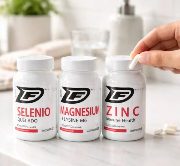MAGNESIO: El Magnesio en comprimidos DRIVING FORCE aporta los siguientes beneficios y propiedades: - Ayuda a la relajación y contracción muscular - Fórmula de mayor biodisponibilidad y absorción - Estimula la creación de hueso - Ayuda a regular el stress, ansiedad e insomnio El magnesio participa en 300 reacciones bioquímicas, como la formación y remineralización de hueso, el buen estado de la pared de las arterias y el control glucémico. Es un elemento esencial para mantener la integridad funcional del sistema nervioso y brindar soporte al sistema inmunológico. Participa en todos los procesos metabólicos de transformación de los alimentos en energía. NO CONTIENE TACC. APTO VEGANO. CRUELTY FREE. Modo de uso: Ingerir de 1 a 4 comprimidos diarios antes de las principales comidas. Se puede consumir en forma continua y no requiere periodos de descanso. Como todo nutriente sus beneficios sólo se mantienen mientras perdure la ingesta. No posee efectos secundarios. Contraindicado en casos de embarazo, lactancia y niños menores a 10 años. Presentación: 50 comprimidos. SELENIO: El selenio DRIVING FORCE es un mineral vital para el cuerpo humano que tiene numerosas funciones. Aumenta la inmunidad, participa en la actividad antioxidante, defiende al organismo contra el daño de los radicales libres y la inflamación. Juega un papel clave en el mantenimiento saludable del metabolismo. Se encuentra naturalmente en el suelo y en ciertos alimentos, incluso pequeñas cantidades en el agua. Es un mineral esencial para la inmunidad, la piel y la tiroides, entre otras funciones. Se encuentra presente en muchos alimentos, pero los suelos de cultivo se han ido empobreciendo de selenio en el paso de los últimos siglos, y algunos vegetales son deficientes en este mineral. Por eso una parte de la población puede no llegar a cubrir los requerimientos mínimos. El Bisglicinato de Selenio es el suplemento orgánico con mayor absorción y biodisponibilidad para nuestro organismo. Es un mineral orgánico quelado que rápidamente es digerido por nuestro cuerpo y utilizado completamente sin residuos. -MEJORA LA SALUD Y APARIENCIA DE LA PIEL -AYUDA COMO SOPORTE DE TUS DEFENSAS Y SISTEMA INMUNOLÓGICO -AYUDA A REGULAR LA FUNCIÓN TIROIDEA -AYUDA A MEJORAR LA FUNCIÓN COGNITIVA -NO CONTIENE CONSERVANTES NI ADITIVOS SINTÉTICOS ZINC: El zinc DRIVING FORCE es un oligoelemento presente en todas las células de nuestro cuerpo y se necesita en algunas funciones vitales. Un déficit de zinc puede causar mayor frecuencia de infecciones, inconvenientes en la piel, caída del cabello, falta de apetito, menor sensibilidad olfativa, visual y gustativa, dificultades en la cicatrización, inconvenientes hormonales y problemas reproductivos. -Refuerza naturalmente el sistema inmunológico y la barrera antiviral -Regula la producción hormonal general tanto en la mujer como en el hombre -Ayuda a prevenir los brotes de Acné -Mejora el dolor menstrual y pre menstrual -Ayuda a la reparación del tejido muscular post y pre actividad física -Actúa como un excelente antioxidante -Mejora los trastornos digestivos Presentación: 50 comprimidos. total : 3 (tres) potes de 50 comprimidos cada uno.